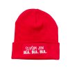Červená pletená zimní čepice se sarkastickou nášivkou je výrazný kousek, který zahřeje a zároveň dodá outfitu šťávu. Hodí se do města, na cestu do práce i na procházky, když chcete pohodlí a trochu drzého humoru navrch.