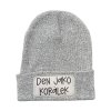 Minimalistická pletená čepice v šedé barvě s výraznými potisky, jako jsou například LEMRA, NECHCI, nebo třeba pro maminky MAMA NA FULLTIME. Stylový doplněk pro všechny, kteří chtějí dát jasně najevo svůj postoj – bez zbytečných slov. Díky jednoduchému designu se hodí ke každodenním outfitům a zároveň zaujme na první pohled.