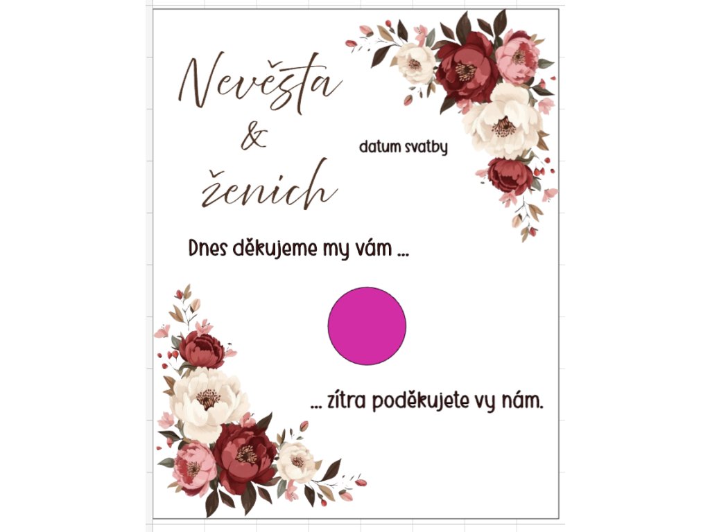 Do poznámky nám napište jméno nevěsty a ženicha a datum vaší svatby!!!