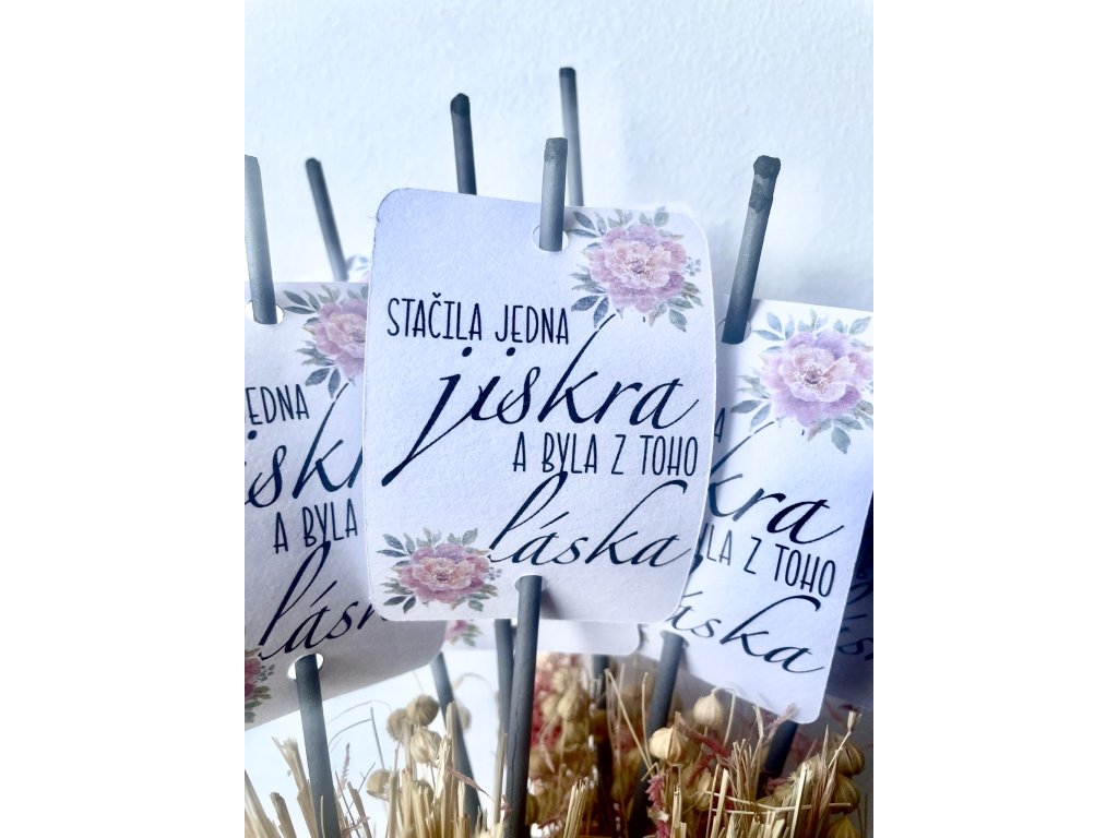 Svatební cedulka na prskavku štěstí vzor 5 Stačila jedna jiskra a byla z toho láska