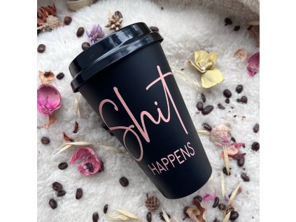 To go kelímek „Shit happens“ Jo, přesně tak – život se někdy prostě nevydaří podle plánu. Ale kafe pomáhá přežít i ty dny, kdy máš chuť všechno zabalit ☕🙃 Stylový černý...