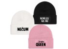 Minimalistická pletená čepice v černé barvě s výrazným potiskem jako je např. SPÍŠ NE nebo FUJ LIDI. Stylový doplněk pro všechny, kteří chtějí dát jasně najevo svůj postoj...