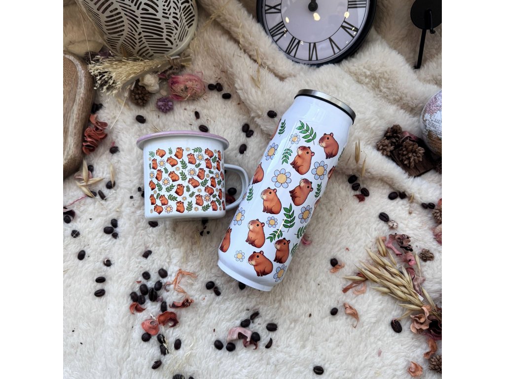 Tenhle set ti zaručeně zlepší den. Kapybary v květinkách? To je hotová terapie ve formě plecháčku a termoplechovky. Ideální pro chvíle, kdy chceš vypnout, usmát se… a dát si něco teplýho do ruky (káva, čaj nebo kakao – náladě se meze nekladou).