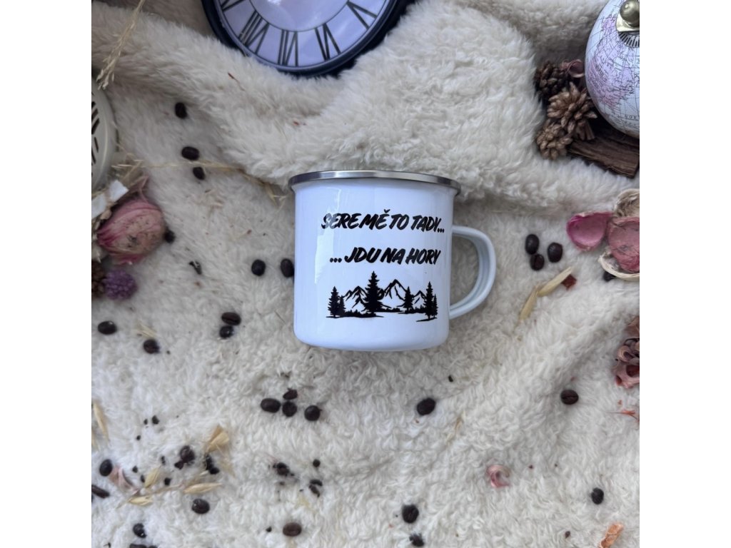 "Sere mě to tady, jdu na hory 2" Smaltovaný hrnek