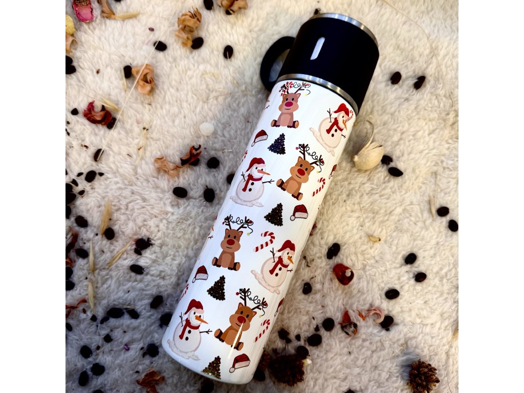 Stylová termoska s motivem sobíků, sněhuláků, vánočních čepic a stromečků je ideálním společníkem do práce, školy i na zimní výlety. Udrží tvůj nápoj horký po dlouhou dobu a díky praktickému hrníčku ve víčku si můžeš vychutnat horké kakao nebo čaj kdekoliv.